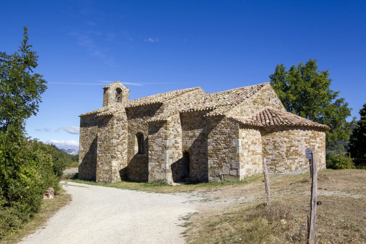 En direction de Vesc, les chemins serpentent entre champs et collines, offrant de superbes vues sur le Parc naturel régional des Baronnies Provençales.